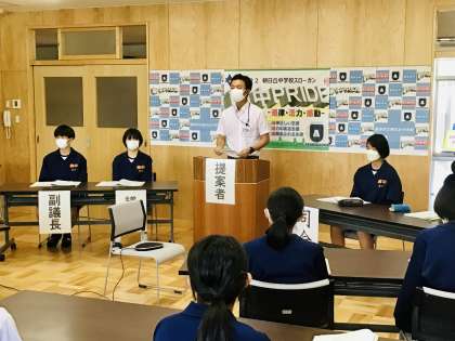 5/23(月)生徒総会を行いました12 公開日 2022/05/23 更新日 2022/05/23 特別活動 全てが予定通り、しっかりと終えることができました。 最後に生徒会担当の坂本先生が、全校生徒へ指示を出しました。 コロナ禍の中、体育館に800人を超える生徒を集めることはできません。 Teamsを有効活用して、生徒総会を行うことができました。 生徒会
