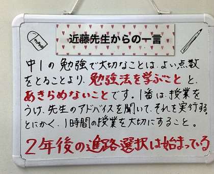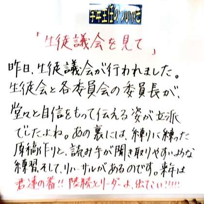 各学年主任の先生方の言葉です。 言葉の奥の意味まで、しっかりと理解したい言葉です。