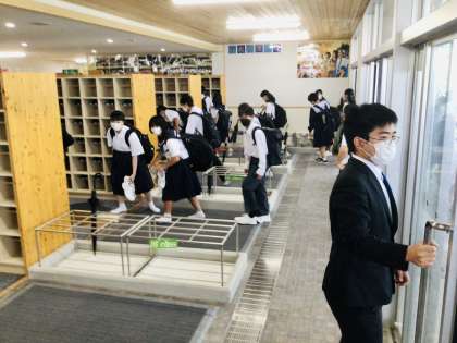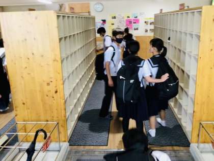 本日は、フォーマルウエアーの登校日です。 いつもとは違った風景が見られます。