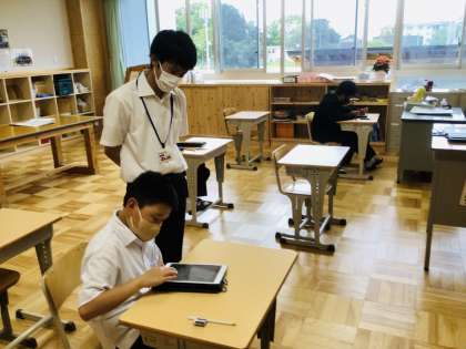 5/26(木)テスト1時間目(1、2、3学級) 公開日 2022/05/26 更新日 2022/05/26 各学年から テストの1時間目です。 1、2、3学級は30分のテスト後の様子です。 タブレットで復習をしています。 特別支援学級