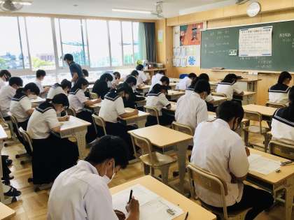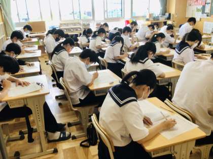3年生の数学のテストです。 3年生 頑張っています。 31、32Cです。