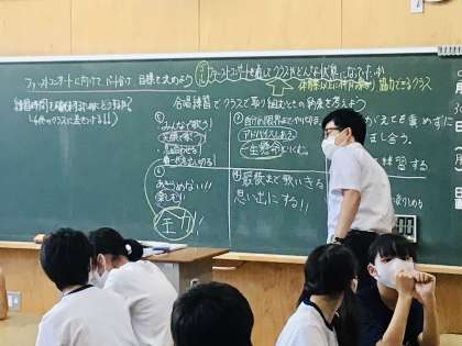 5/30(月)5限AT1年生学級活動の様子3 公開日 2022/05/30 更新日 2022/05/30 各学年から ファーストコンサートまで、後1か月を切っています。 写真は、1年7組と1年8組です。 1年生の頑張りを楽しみにしています。 1年