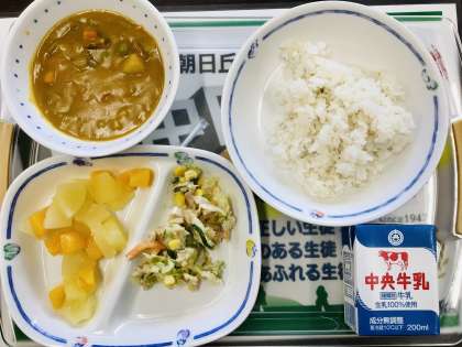 生徒たちに大人気の カレーライスです。フルーツも甘くて美味しかったですね。