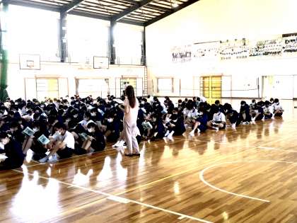 6/1(水)3年生 修学旅行に向けて 公開日 2022/06/01 更新日 2022/06/01 各学年から 3年生が修学旅行に向けて、学年集会を行いました。 養護教諭の笠原先生が、健康面からの注意事項を話しました。 2泊3日の旅行となります。3日間健康でいるためにどうしたら良いかについて考えることができました。