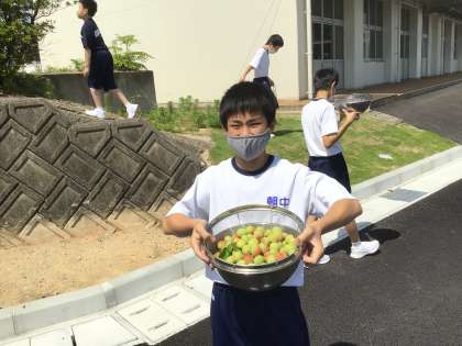 ほら、いっぱい取れましたね。 これから梅ジュースを皆で作ります。
