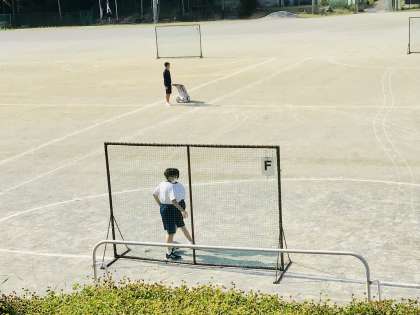先生とともに朝から保健体育の授業準備のボランティアを行う生徒たちです。