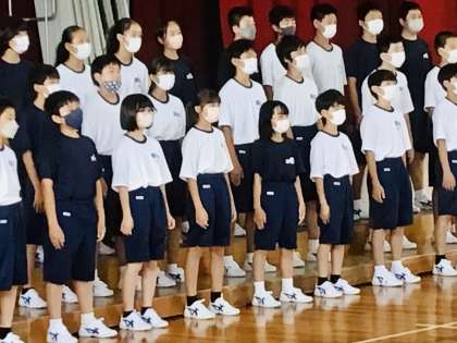 1年2組です。 最後まで、しっかりと歌い切りました。 お疲れさま。