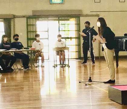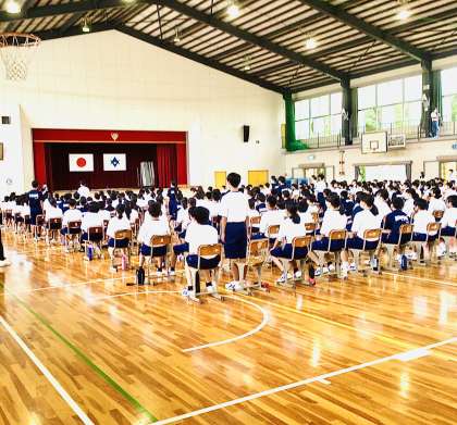 最後に学年主任の先生が、合唱をリードした合唱コミュニティー委員会の生徒を紹介し、皆で拍手を送る場面がありました。