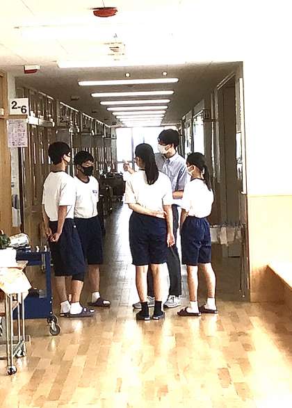 6/20(月)本日より短学活の学級会議がスタートします 公開日 2022/06/20 更新日 2022/06/20 各学年から 短学活のことなのでしょうか?それとも全然別の事かもしれません。 リーダーが担任の先生と打ち合わせをしています。 2年