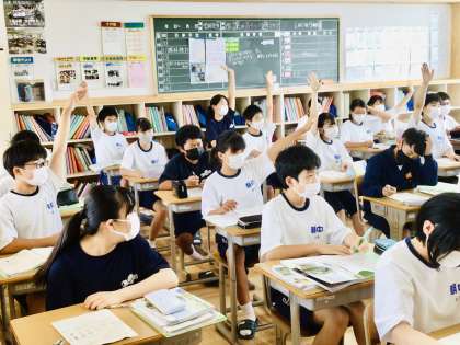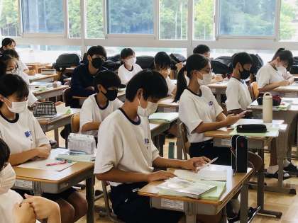 1年6組の理科です。 ニコニコ生徒がしていました。 楽しい授業ですね。