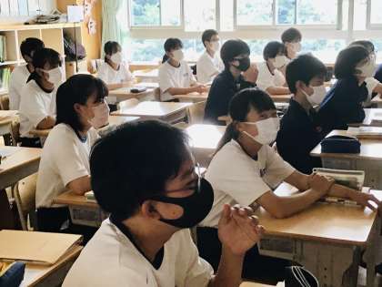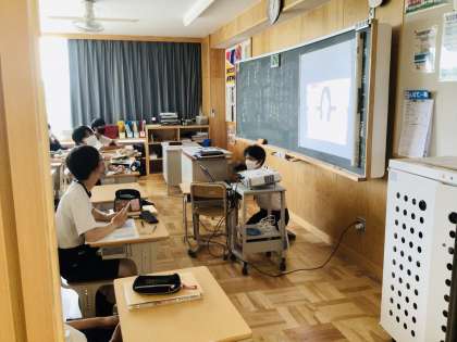 3年8組の国語の授業です。 俳句の学習でしょうか? 興味深いVTRを見ていました。