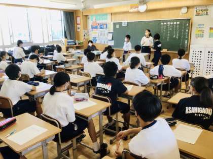 16学級です。 この話し合いを進めていく中で、挨拶がより飛び交う学校になりつつあります。