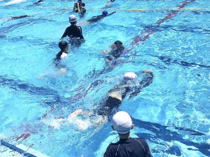 6/30(木)水泳の授業 遠くの水を掴もう2 公開日 2022/06/30 更新日 2022/06/30 各学年から バディーシステムを用いて、ペアを組み、命の危険がないかを常に見ています。 教師は、3名以上の教師で、生徒に異常がないかを確認しています。 1年