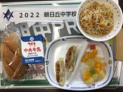 昨日は、このような給食でした。 ⭐️餃子、ビーフンです。 あと、給食も夏休み前 3回となりました。