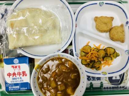今日の給食は、カレーナンでした。 生徒から人気のある給食ですよね。 明日は、夏休み前最後