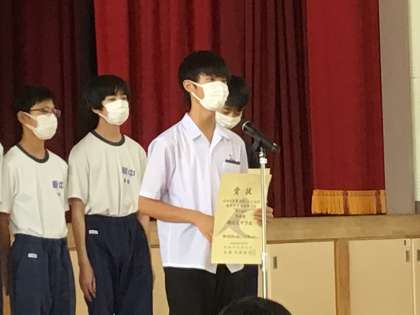 朝中生の頑張りがこのように認められ、大変誇らしいです。