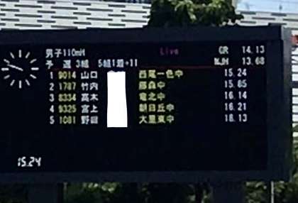 7/24(日)県大会 陸上男子110mハードル 公開日 2022/07/24 更新日 2022/07/24 輝く朝中生! 男子110メートルハードル 明日の決勝に進みます この暑さのコンディションで生徒たちは頑張っています。 2年