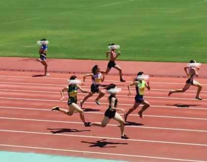 7/24(日)県大会 陸上女子100m(1年生の部) 公開日 2022/07/24 更新日 2022/07/24 輝く朝中生! 1年生女子100メートルがいよいよスタートします。 気温は、30度を超える中、本当に皆さん 素晴らしい走りをしています。 1年