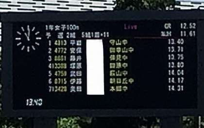 7/24(日)県大会 陸上女子100m(1年生の部) 公開日 2022/07/24 更新日 2022/07/24 輝く朝中生! 1年生女子100メートル 走りきりました。 午後のリレーも頑張ります。 1年