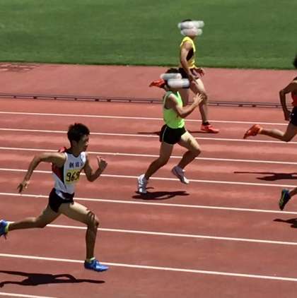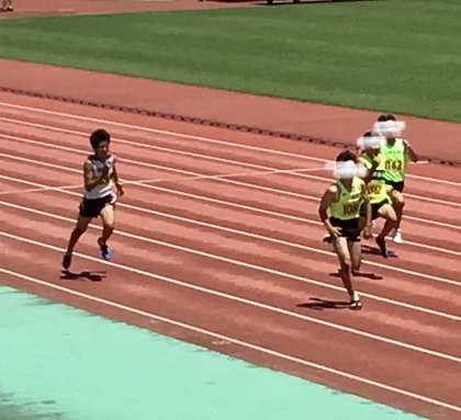 1年男子100メートル スタートしました。 皆、速いです。