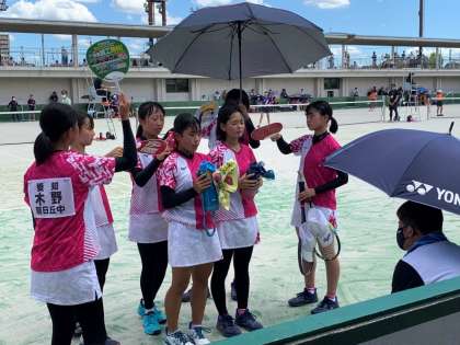 7/30(土)愛知県総合体育大会 ソフトテニス女子団体1 公開日 2022/08/01 更新日 2022/08/01 輝く朝中生! 男子同様 女子も団体戦に出場しました。 女子の第1回戦は、名古屋市立神丘中です。 部活動