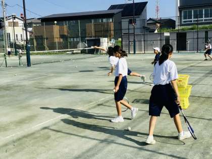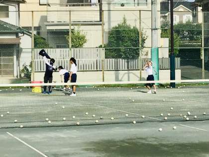 テニス部女子の生徒たちは、黙々と練習を進めていました。