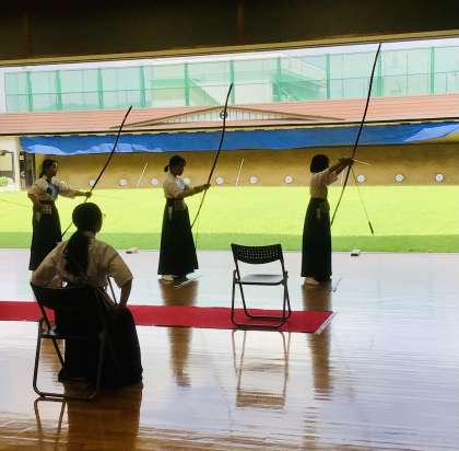 8/3(水)愛知県中学校総合体育大会 弓道4 公開日 2022/08/03 更新日 2022/08/03 輝く朝中生! まず、最初は1人4本ずつ打ちます。3名の選手が矢を放ちますので、12本のうち多いチームが決勝に駒を進めます。 部活動