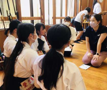 8/3(水)愛知県中学校総合体育大会 弓道7 公開日 2022/08/03 更新日 2022/08/03 特別活動 団体戦は最期の決勝まで残ることができませんでしたが、これまでの中学校生活の最後をこの県大会で締めくくることができ、本当に良かったと思います。 団体戦を終え、顧問の先生から一言ずつ言葉をもらっているところです。 団体戦、最後まで諦めない姿は、大変素敵でした。 部活動