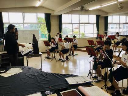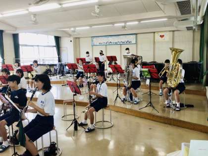 8/6(土)昨日の朝の部活動 吹奏楽 公開日 2022/08/06 更新日 2022/08/06 特別活動 吹奏楽の部活動の様子です。 暑い中ですが、エアコンを効かせながら、部活動を行っています。基礎的な練習からのスタートです。 部活動