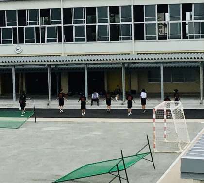 バスケ部女子が、縄跳びをしています。顧問に聞きましたところ、生徒は楽しく、行えることができ、また、脚力も持久力もつくので行っているとのこと。
