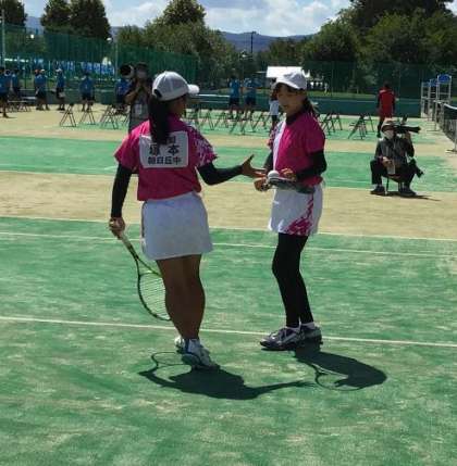 8/21(日)全国中学校ソフトテニス大会団体 決勝7 公開日 2022/08/21 更新日 2022/08/21 輝く朝中生! 0−1から1−1へと振り出しへ戻し、 1−2と取られれば、2−2までおいつきました。 部活動