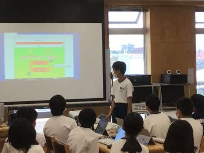 8/24(水)パソコン部 自作ゲーム教材発表場面 公開日 2022/08/24 更新日 2022/08/24 特別活動 パソコン部の本日の活動の様子です。 自作ゲーム教材等を発表して、より良いものにしていこうという試みが見られます。 部活動