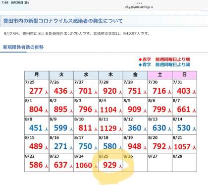 手指消毒、人混みでのマスク着用、人の多いところでの飲食を避けるなど、生活には十分注意をして、夏休み最後の6日間を送りたいものですね。