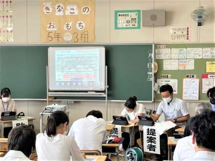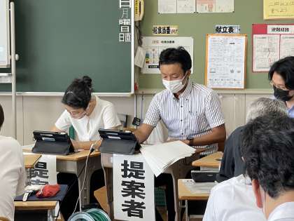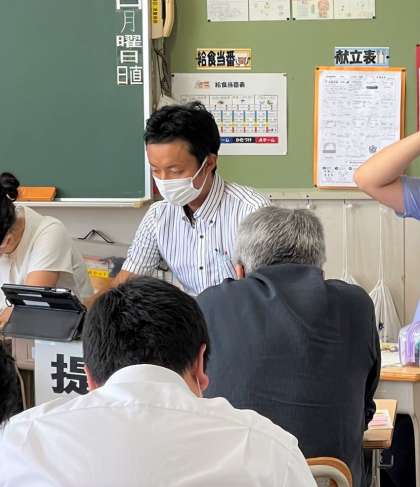 8/27(土)昨日の豊田市教育研究協議会 公開日 2022/08/27 更新日 2022/08/27 学校の特色ある活動 本校の坂本先生が、豊田市教育研究協議会において、特別活動部会で生徒会活動や特別活動分野の発表をしました。 参加者は、密を避けるため複数の教室に分散し、タブレットのTeams機能を使って、オンライン会議の形式をとりました! 1クラス30人定員で、複数の教室を会場にして行いました。その様子をご覧ください。 特色ある活動