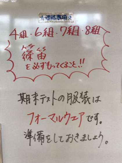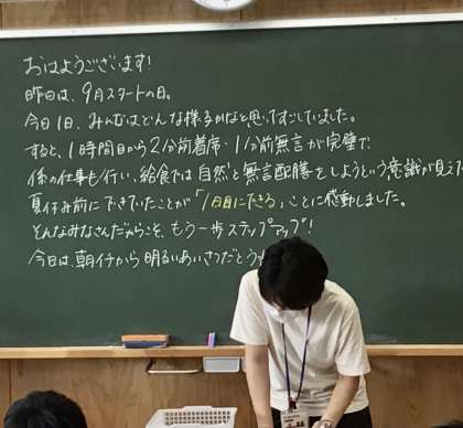 黒板メッセージ、学年メッセージをご覧ください。2年生です。
