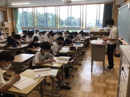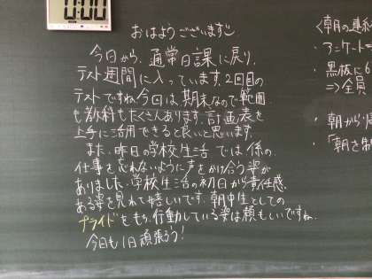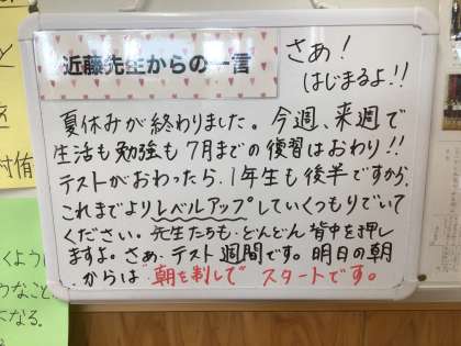 1年生の学年黒板メッセージ 学級のメッセージ 数学の授業の様子です。