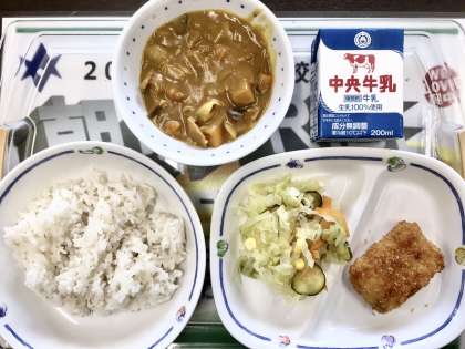 今日の給食は、生徒たちに大人気のカレーライスでした。