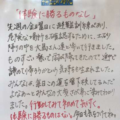 9/5 (月)2年学年掲示板メッセージ 黒板メッセージです。