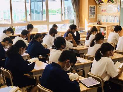 9/26(月)2年生読書タイム 公開日 2022/09/26 更新日 2022/09/26 各学年から 2年生は、読書タイムを行っていました。家から自分の好きな本をもってきて、朝活動の時間に読む活動です。少しの間ですが、集中して読みたいですね。 2年