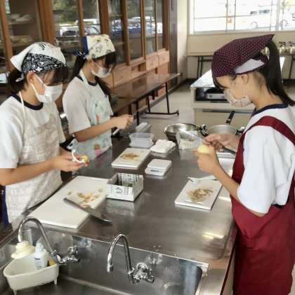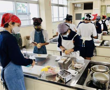 9/27(火)2年生家庭科 調理実習2 公開日 2022/09/27 更新日 2022/09/27 各学年から 久しぶりの調理実習(3年ぶりぐらいでしょうか?) コロナ対策を十分にこうじて行っています。 2年