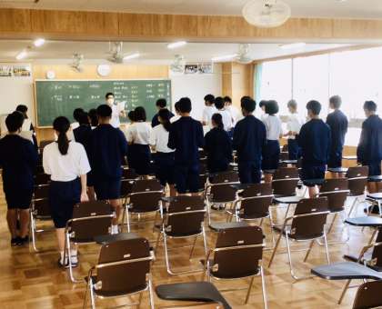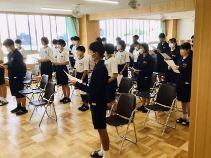 朝活動の時間を使って、進路学習会の準備が始まっています。学級学年のリーダーが、各高等学校の先生の説明会の司会を取り仕切ります。朝から元気な声が聞こえてきました。