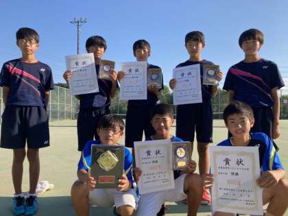 10/1(土)部活動の協会大会17 公開日 2022/10/01 更新日 2022/10/01 輝く朝中生! 男子テニス部 個人、団体ともに優勝をしました。 そして、個人3位も獲得しました。 素晴らしい活躍ぶりです。 おめでとうございます。