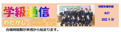 1,2,3学級通信最新号をお届けします 公開日 2022/10/03 更新日 2022/10/03 お知らせ 先週末に掲載する予定でした学級通信最新号をお届けします ご覧ください。 ↓↓↓ ☆学級通信21 特別支援学級