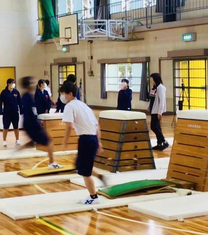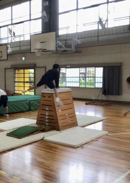 楽しそうに跳んでいます。怪我のないように注意して見ています。