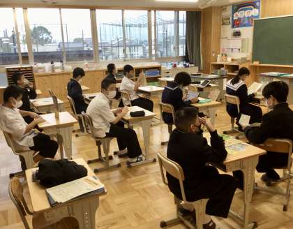 1,2,3学級の最後の学級活動です。 通知表をもらっています。