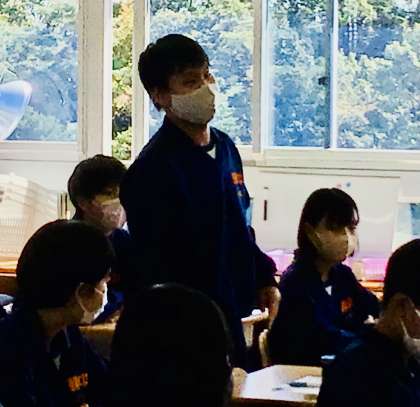 まとめの部分での生徒の発言の様子です。授業に参加し、自分の考えを述べる積極性が見られています。