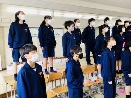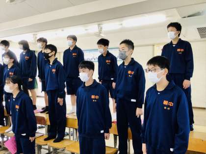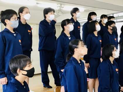 10/27(木)学級別合唱指導会1年7組 公開日 2022/10/27 更新日 2022/10/27 輝く朝中生! きみのひとみに の男性パート低く入るところをしっかり音程をつかんではいるとよりよくなりますね。また、ABのユニゾンから、Cで別れる個々のパートをしっかりと決めていきたいですね。 1年