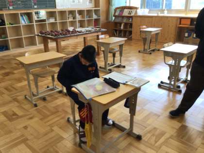 朝、学級をまわってみると、1学級の教室にみんなで掘ったサツマイモが並んでいました。大変おいしそうなお芋です。
