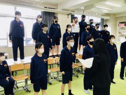 10/31(月)学級別合唱指導会1年5組 公開日 2022/10/31 更新日 2022/10/31 輝く朝中生! ホールの後ろまで届くよう声を飛ばして頑張ってほしいです。 こころのなかであしたが の、最初の”こ”の音が大事と話されていました。2部のパートでの練習など、練習を工夫するなどして、頑張ってくださいね。 1年