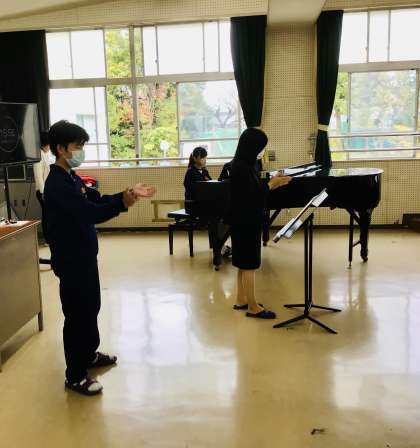 10/31(月)学級別合唱指導会2年5組 公開日 2022/10/31 更新日 2022/10/31 各学年から 2時間目は、まず、2年5組です。 曲目は、「時を越えて」です。伸びやかに歌います。 2年
